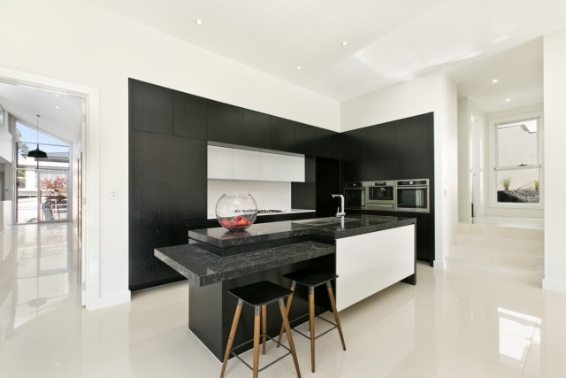The design was kept simple to adhere to the owners budget requirements so high quality features could be installed. These include hydronic underfloor heating, 9 foot ceilings, polished concrete, commercial grade aluminium windows, custom built cedar feature windows and front door, cedar ceiling and outdoor kitchen to alfresco, 60mm stone bench tops to kitchen and custom joinery.